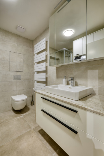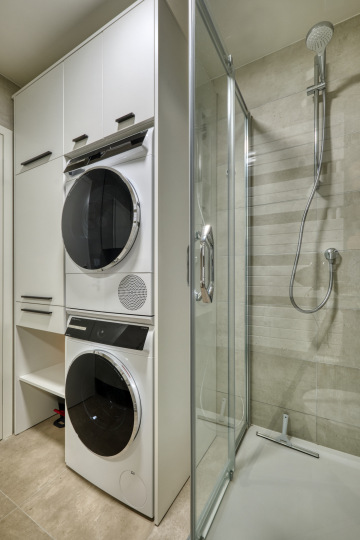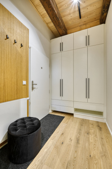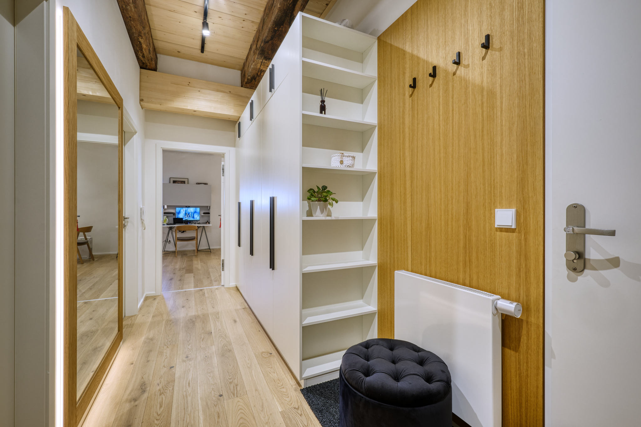 Na první pohled vás zaujme čistota a jednoduchost prostoru. Ale jakmile se začnete pohybovat v tomto interiéru, objevíte promyšlený systém, který respektuje každodenní potřeby jeho obyvatel. Každý detail je pečlivě promyšlen, aby byl prostor nejen krásný, ale především funkční a pohodlný.
