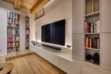 - nábytek na míru až ke stropu, který skvěle pracuje s vertikálou prostoru,